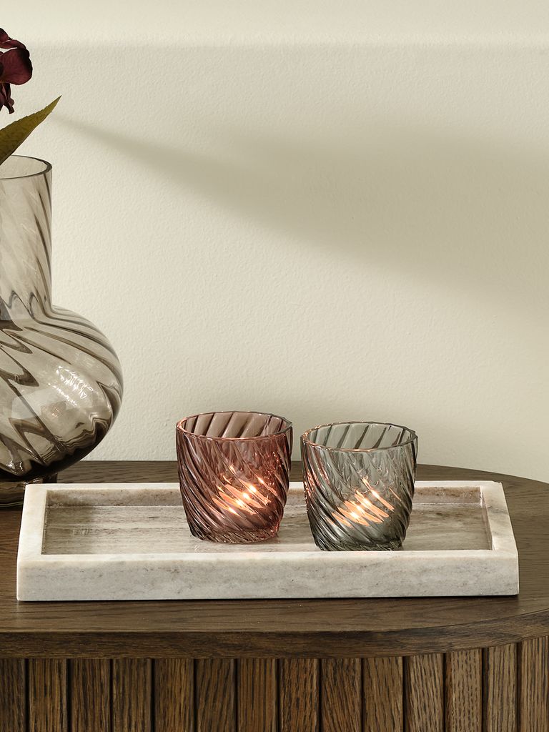 Sklenený svietnik s ozdobným vzorom, ktorý vytvára jemnú žiaru. Dostupný v rôznych farbách, napríklad v zelenej a ružovej, ktoré sa predávajú samostatne. Vhodný do umývačky riadu na jednoduché čistenie. Ø8 x V8 cm