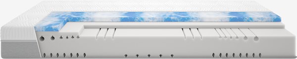 24 cm vysoký penový matrac 90x200 cm s dvomi úrovňami tvrdosti a 7 zónami komfortu, ktoré telu poskytujú jedinečnú ergonomicky správnu oporu. Jadro z 19 cm polyuretánovej peny a 3,5 cm tlaky uľavujúcej gélovej peny, ktorá sa prispôsobí krivkám tela od odvádza prebytočné teplo. Poťah možno prať.