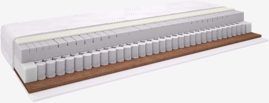 Obojstranný 24 cm vysoký pružinový matrac 90x200 cm s 2 úrovňami tvrdosti, mini-taštičkovými pružinami, 266/m², a 7 úrovňami tvrdosti, ktoré telu poskytujú ergonomicky správnu oporu. Matrac je na jednej strane prešívaný tlaky uľavujúcou pamäťovou penou a polyuretánovou penou, na druhej strane je vrstva kokosového vlákna a výplň z polyuretánovej peny. Poťah, ktorý možno prať, má z jednej strany chladivý SensICE s okamžitým upokojujúcim a chladivým účinkom. Ventilačný pruh po stranách pomáha cirkulácii vzduchu v matraci.