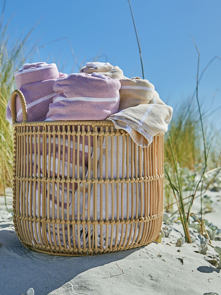 Kôš v prírodnom pletenom dizajne ako všestranné úložné riešenie. Ideálny na organizáciu vecí, ako sú hračky alebo deky. Praktické rukoväte uľahčujú prenášanie. Ø35 x V35 cm